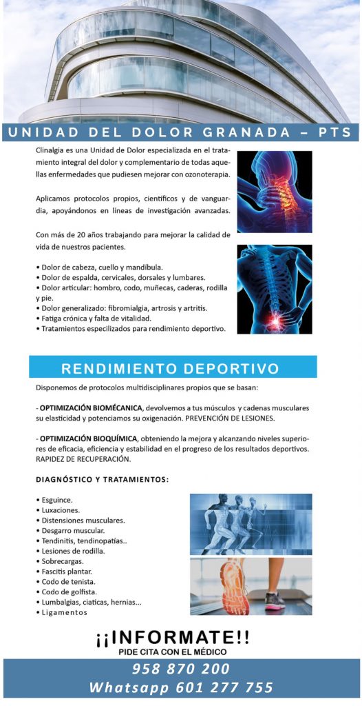 De nuevo estamos en Granada en la Unidad de Dolor de Granada – PTS con Clinalgia a partir del 7 de octubre, en la Avenida del Conocimiento 12, Edificio I+D Armilla, 18016. Puedes pedir cita en el 958 870 200 o por Whatsapp al 601 277 755.